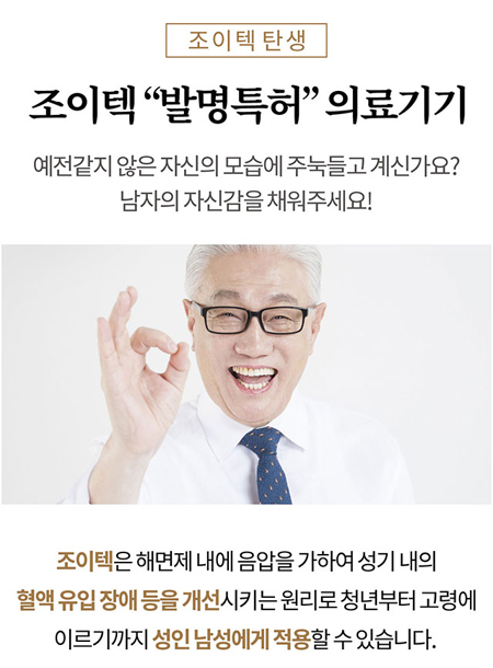 남성의 자신감 회복 조이텍, 해면체 혈액유입장애 개선 의료기기입니다.