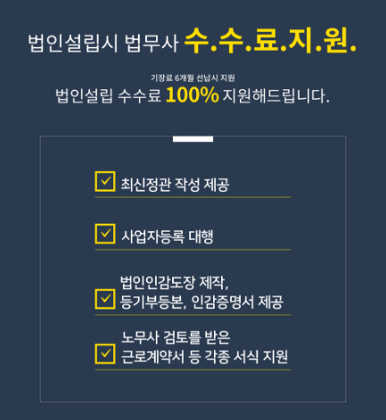 법인 설립 시 법무사 수수료 지원 - 법인 설립 수수료 100% 지원!!